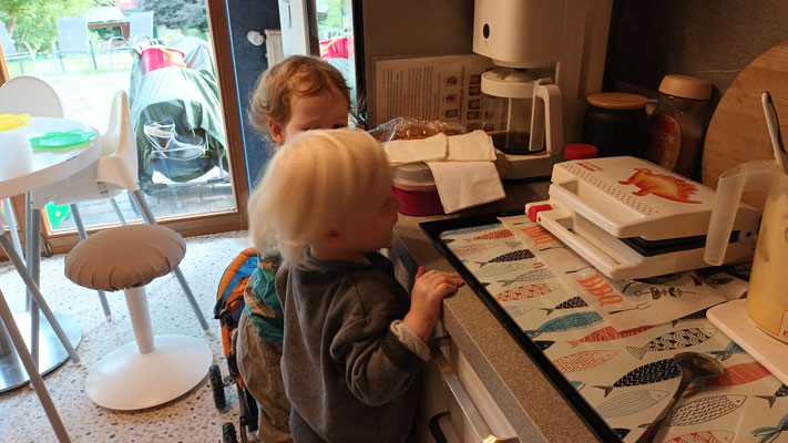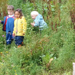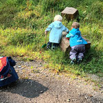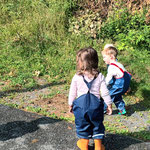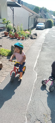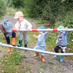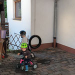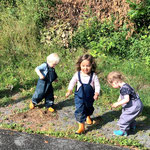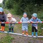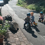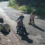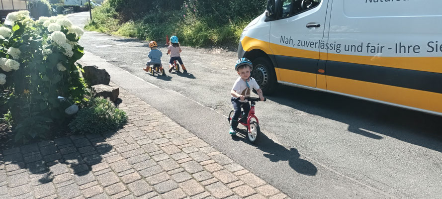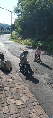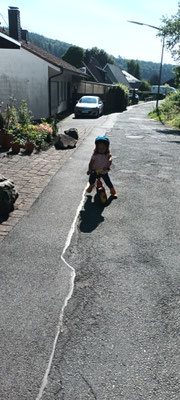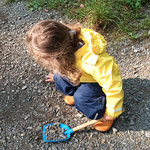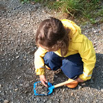 wir können Arbeiten an einer Mini Baustelle beobachten und auch noch ein wenig mit dem Laufrad oder Puky  fahren