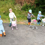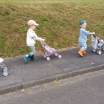 ein Spaziergang mit den Puppenwagen in unserer Straße