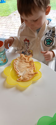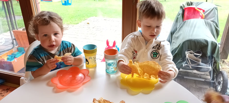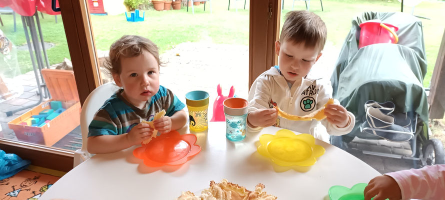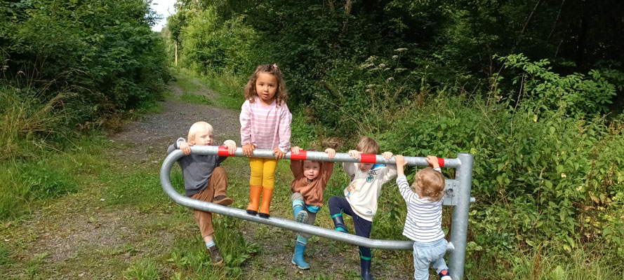 Die warmen Tage verbringen wir im Wald oder mit Kneten, Schaukeln, Malen .....